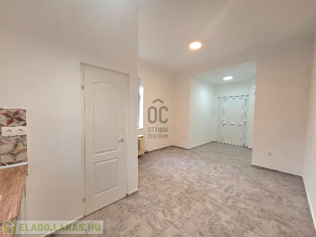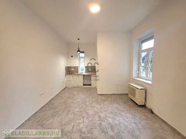 2. - iroda/raktár: Jelenleg egy közlekedőből és egy egy légtérből álló, felújítandó helyiség (ablakai már műanyag nyílászárókra lettek cserélve).