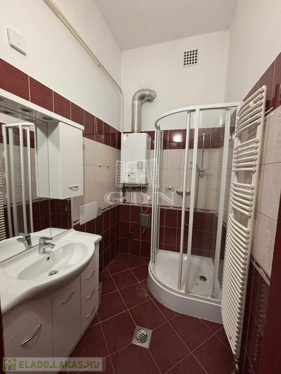 A gondosan karbantartott lakásban gáz-cirkó kazán biztosítja a meleget radiátoros hőleadással.