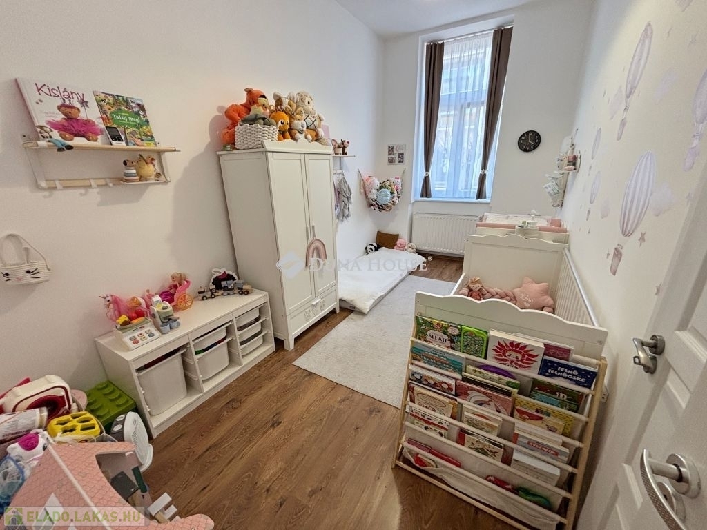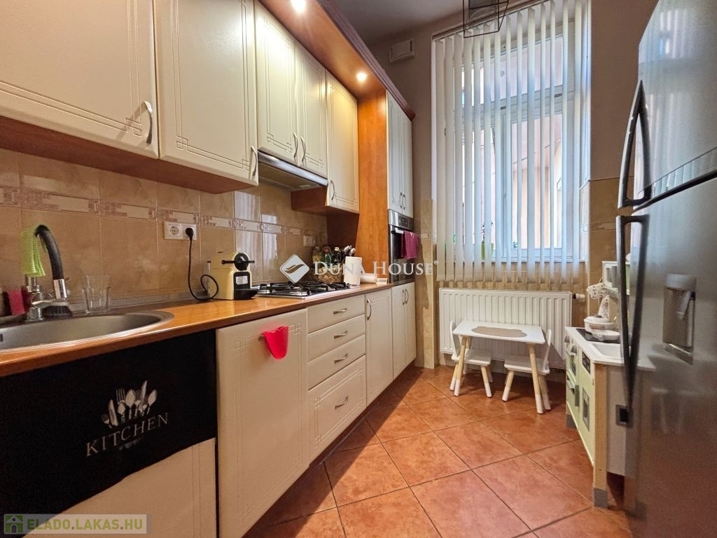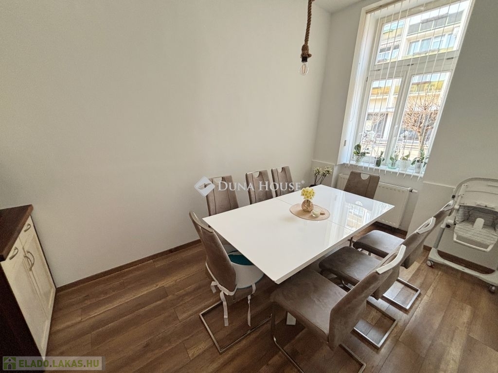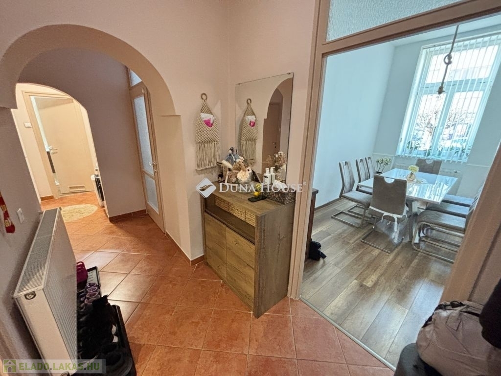 A lakásba a kapuszínből jutunk be, előszobájából nyílik a három utcafronti szoba, a fürdő-wc, a ház belső udvarára tájolt a konyha és a galériázott nappali, a galériából nyílik egy kisebb, zuhanyzós fürdő-wc. (összesen 80 m2 + a galériaszint). Az ingatlan 2010 és 2015 között teljes felújításon esett át, műszakilag is korszerűsítve lett, esztétikailag is hibátlan állapotban van. Fűtését gáz-cirkó kazán biztosítja, alternatívaként hűtő-fűtő klímaberendezést is felszereltek.
