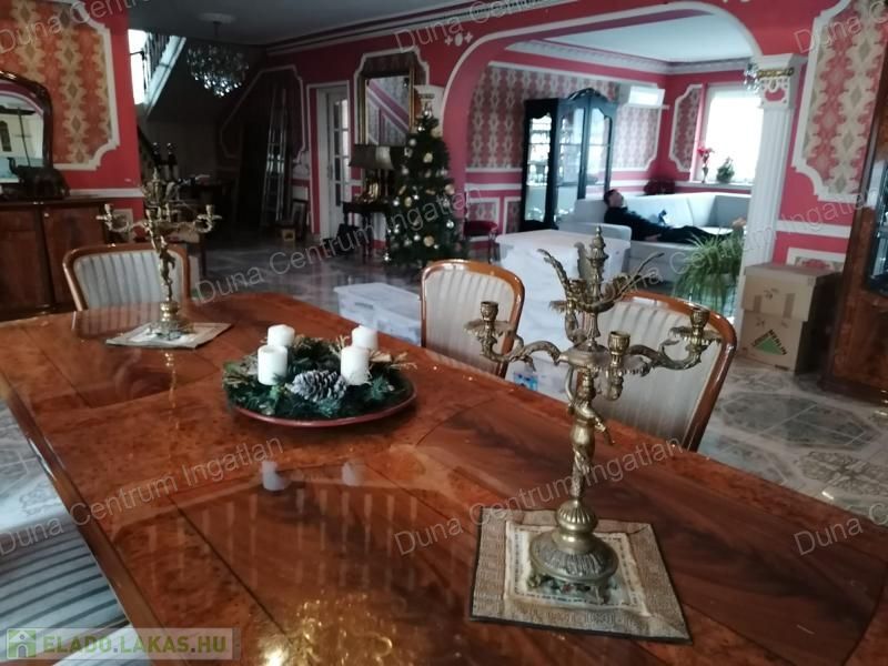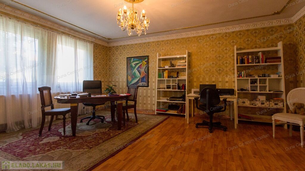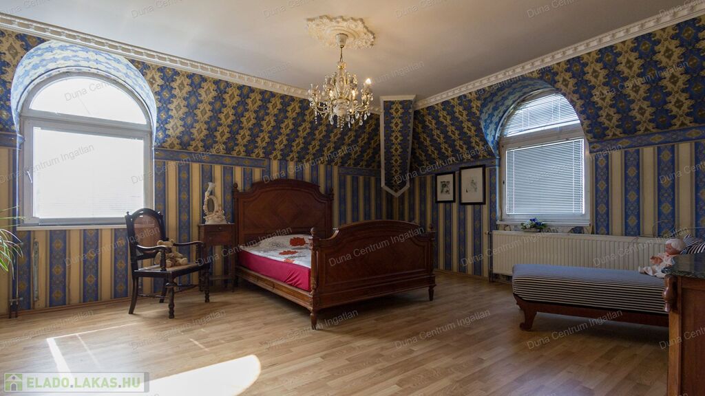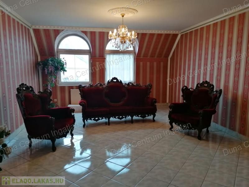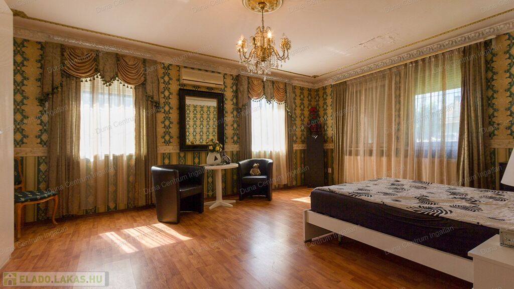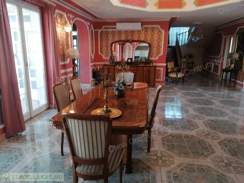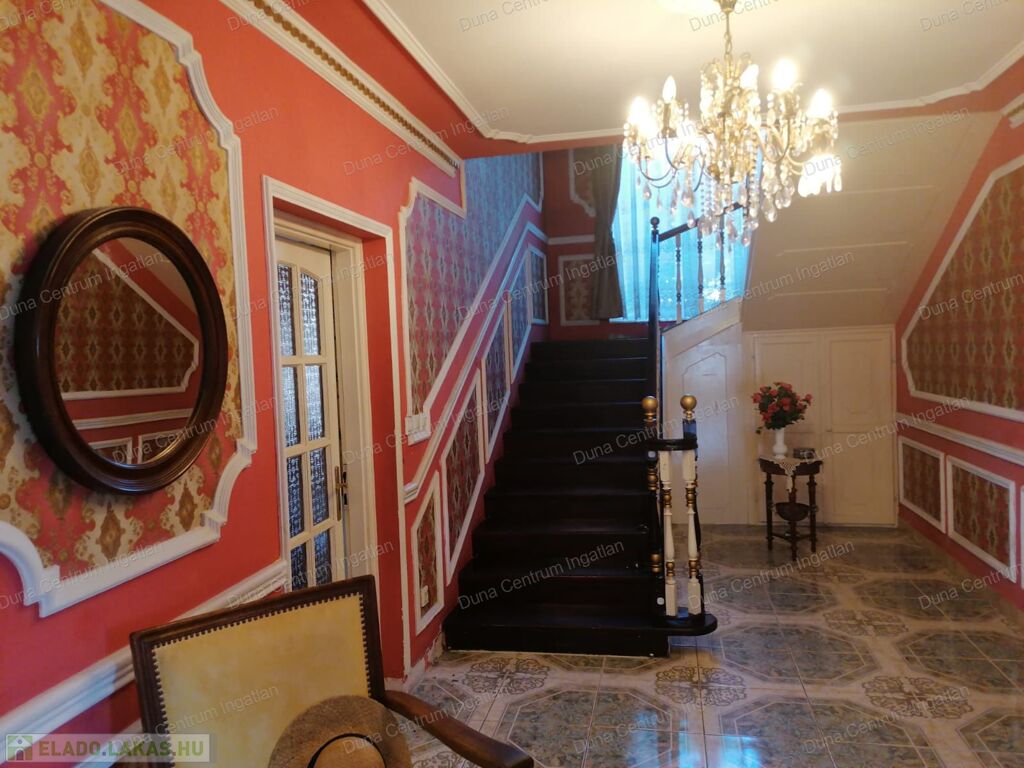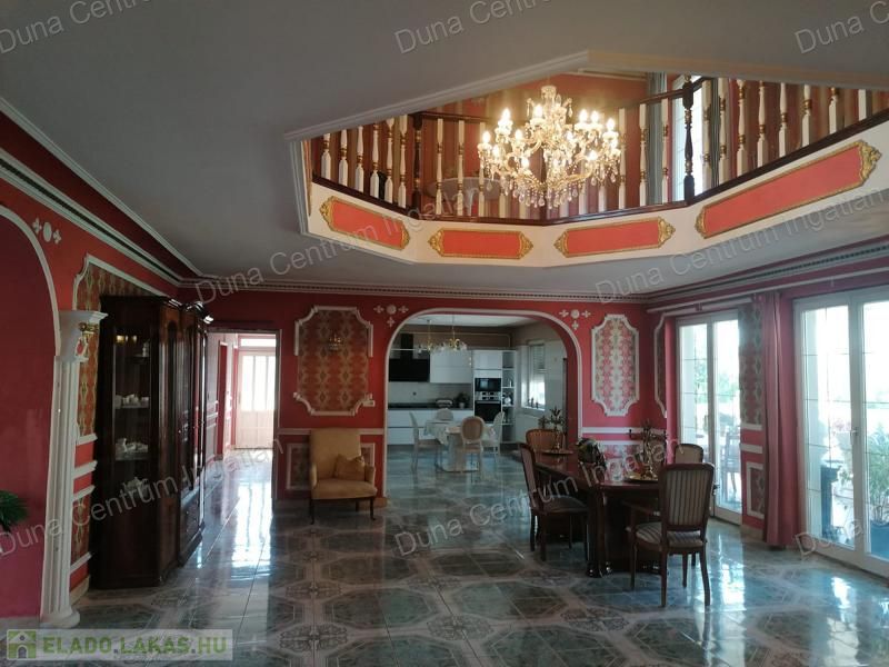 Tapolcán központhoz közel , mégis csendes helyen található tágas , egyedi villa eladó. Az ingatlan elhelyezkedése kiváló, sétatávolságra van minden napi igényt kielégítő bevásárlási lehetőség, szupermarketek, valamint éttermek, bankok, a jól ismert tapolcai tó, stb. A Balaton kb.11 km-re található. A ház kétszintes , amelynek 440 m²-es lakóterében két hatalmas nappali, hat tágasc hálószoba , két fürdőszoba, egy jól felszerelt konyha található. Az ingatlanra jellemző a boltíves, stukkó mennyezetű nagy szobák és a nyitott kialakítás, ahonnan két emeletre nyílik kilátás. A földszinti nappaliból két dupla ajtó vezet az alsó teraszra, innen pedig a kertbe. Az emeletre kényelmes lépcsőn lehet feljutni, tágas előszobával. Itt található még egy nyitott nappali és hálószoba, valamint egy gyönyörű, fedett terasz.
