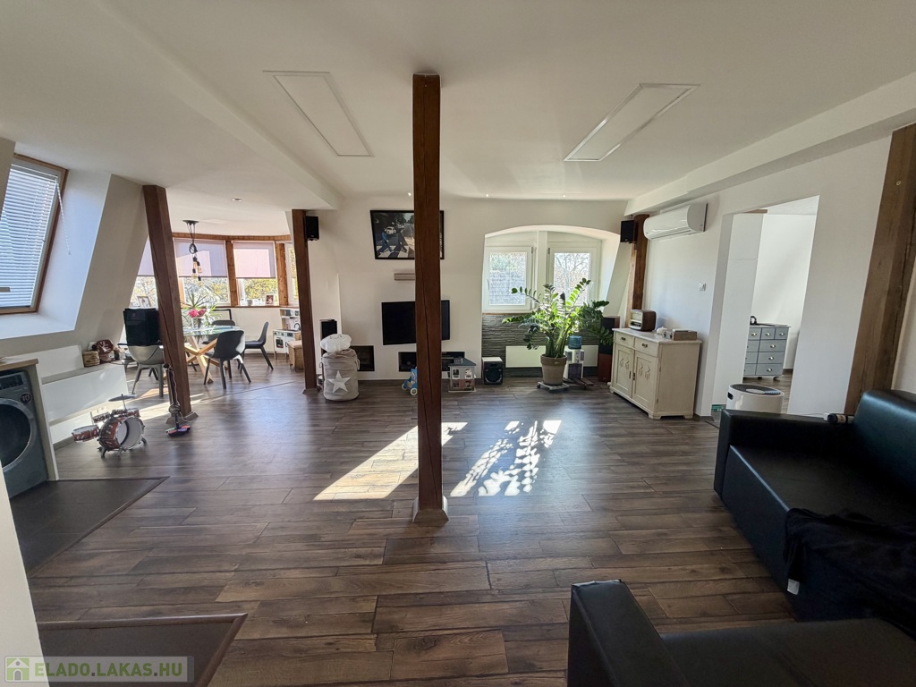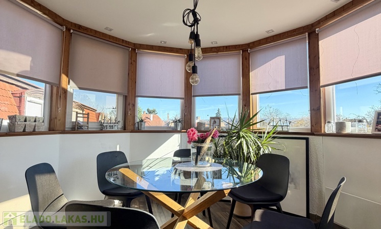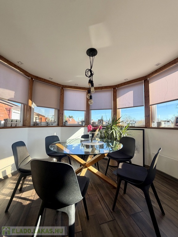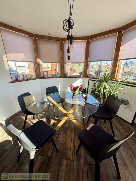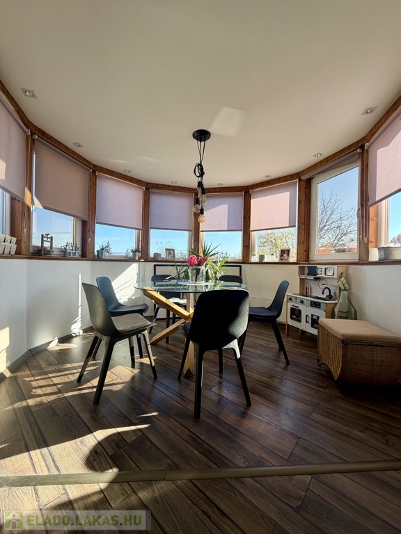 egy körbenapozott, toronyszerű étkezőrész, amely különleges karaktert ad a térnek, és igazán egyedivé teszi az ingatlant.