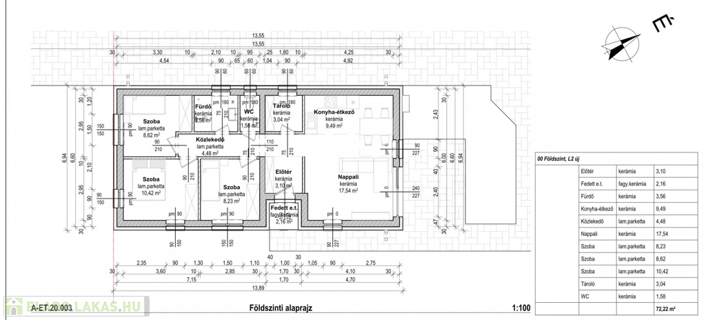 -2-es lakás: 72,22nm + 16nm terasz (nappali + 3 hálószoba)+673m saját kertkapcsolat