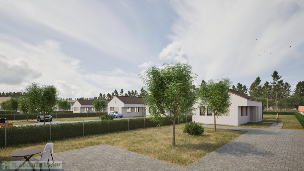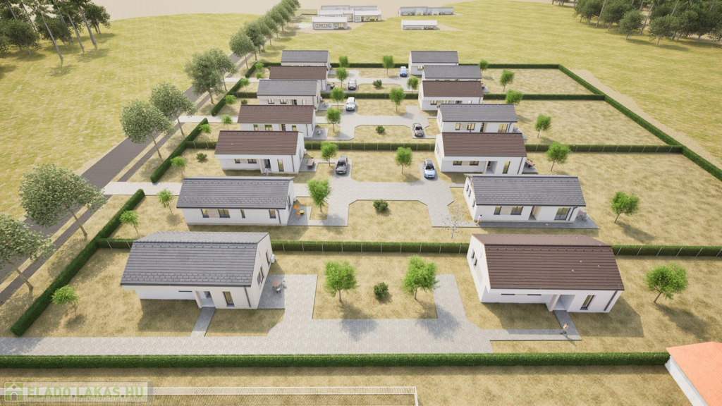 A most kialakuló lakóparkban 7 telken 2-2 egységből álló (összesen 14 db lakás) szabadon álló sorházi lakások kerülnek kialakításra. (CSOK + HITELRE alkalmas)