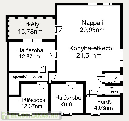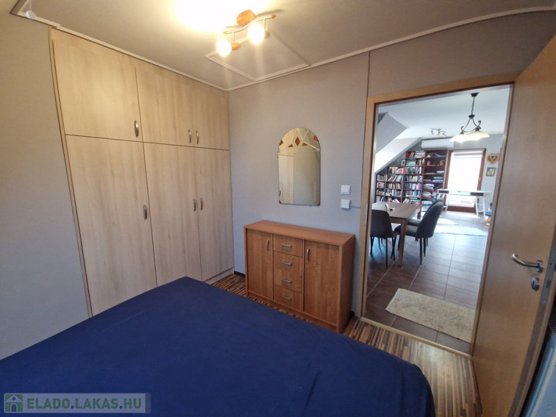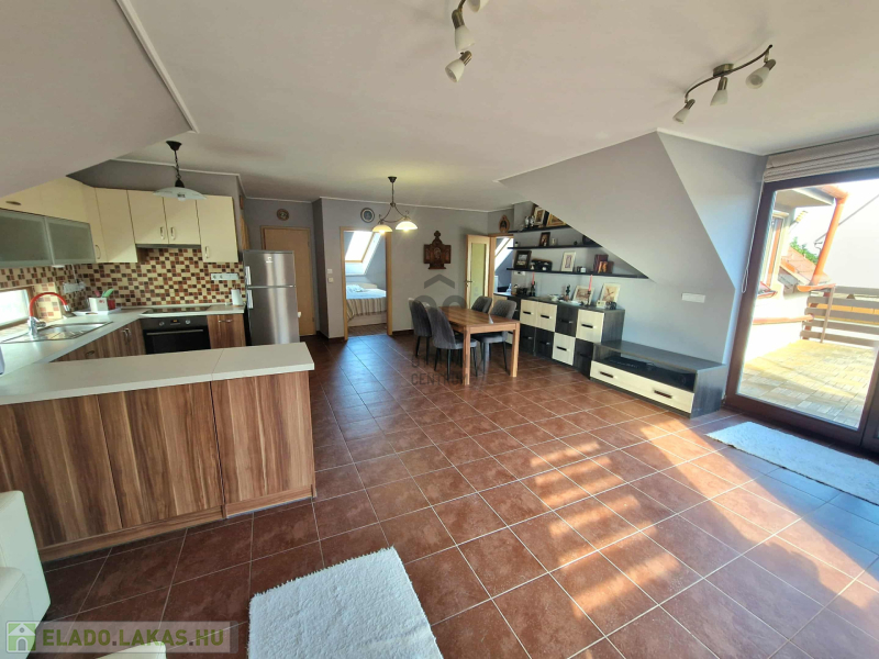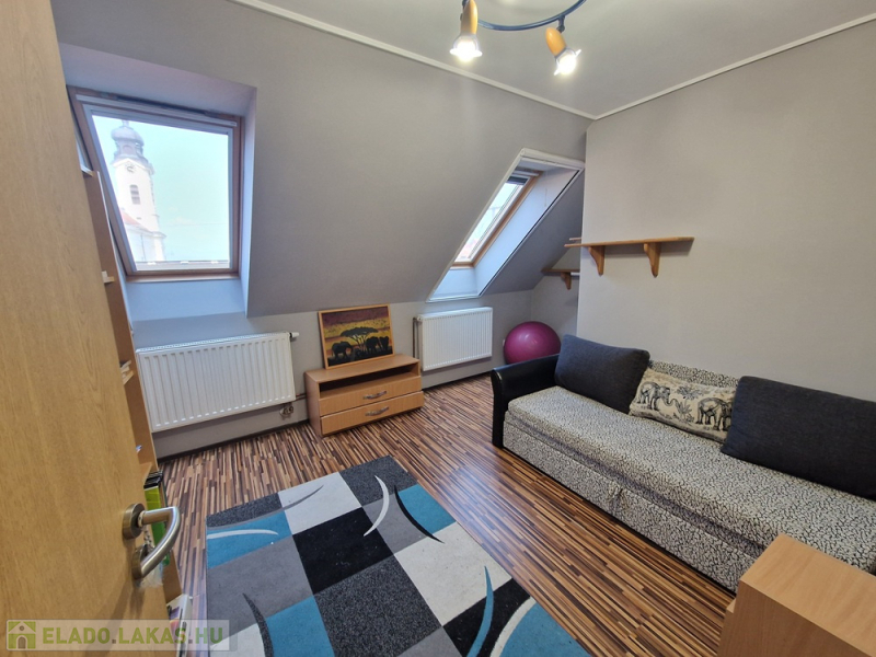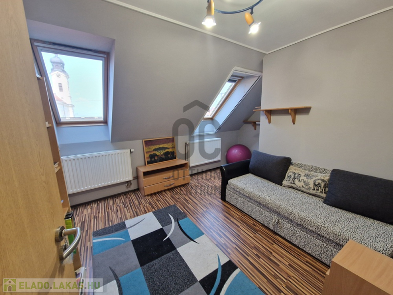 Az ingatlan három külön nyíló hálószobával és egy tágas amerikai konyhás nappalival rendelkezik. Az elosztása kiváló, hiszen minden szoba önállóan megközelíthető. A nappaliból egy 15 nm-es erkélyre léphetünk ki, ahonnan gyönyörű kilátás nyílik a Kálvária-dombra.