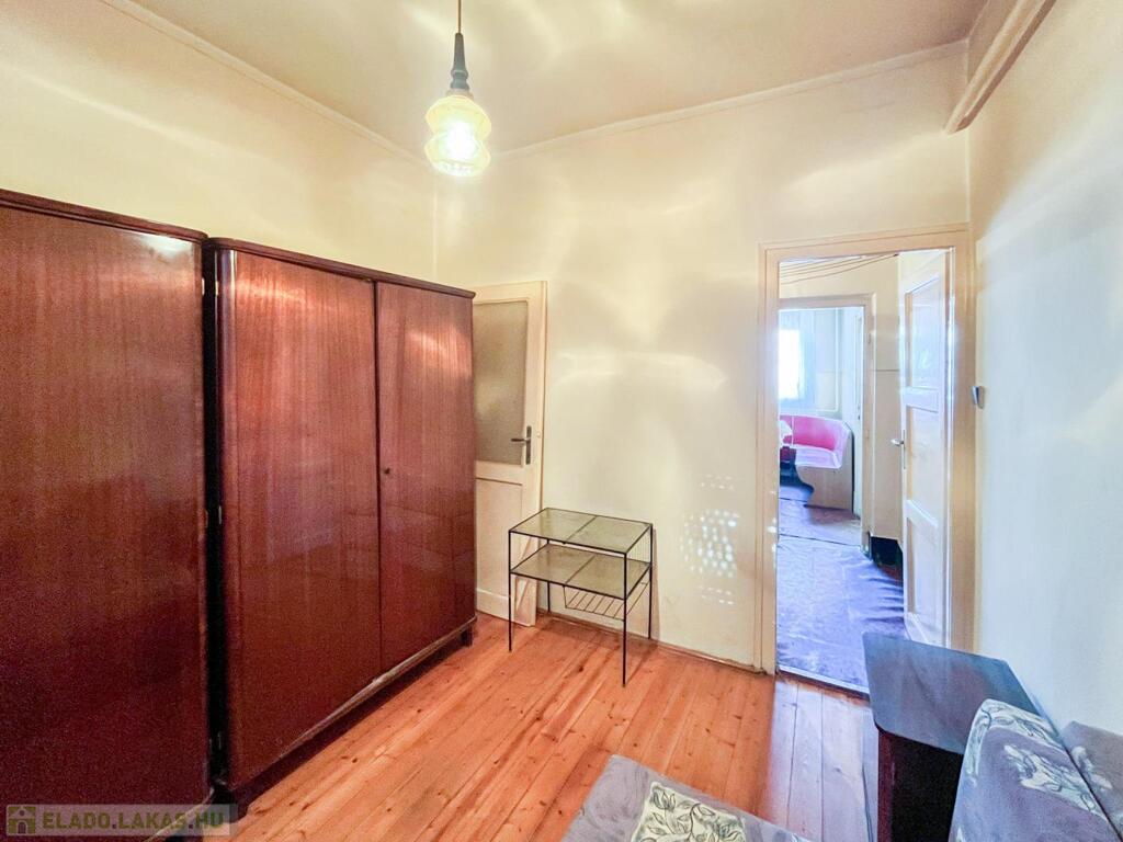 A lakás egy két szintes, négy lakásos társasház földszintjén helyezkedik el, az 1960-as–1970-es években épült, klasszikus elrendezésű, stabil szerkezetű épületben. A lakás elosztása: előtér, félszoba, nappali, konyha, fürdőszoba és WC. A nyílászárók eredeti, fa szerkezetűek, a fűtésről gázkazán és radiátoros hőleadók gondoskodnak.
