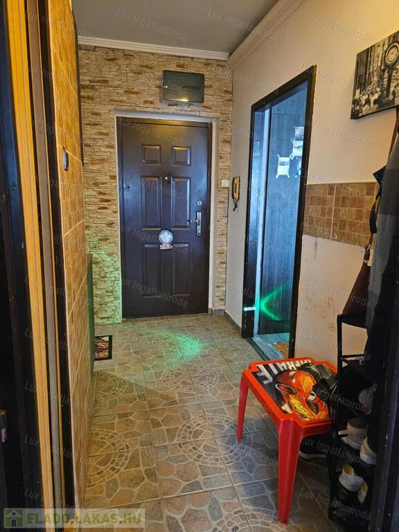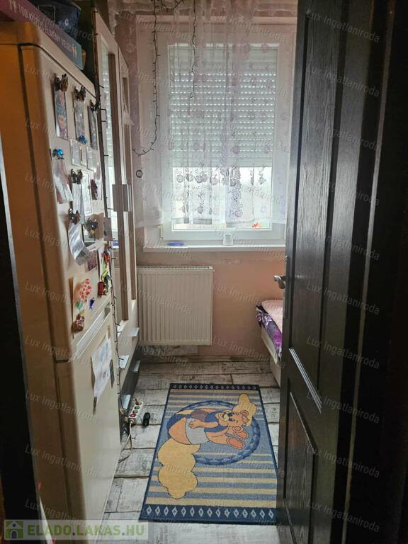 A szobákban laminált parketta van, az előszobában és a főzőfülkében járólap, a fürdőszobában linóleum található. A fürdő és a WC egy helyiségben kapott helyet. A lakás középső elhelyezkedésének köszönhetően meleg és kedvező fenntartású.