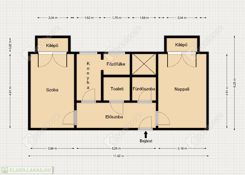 - a szobák laminát padlóval, a többi helyiség járólappal burkolt