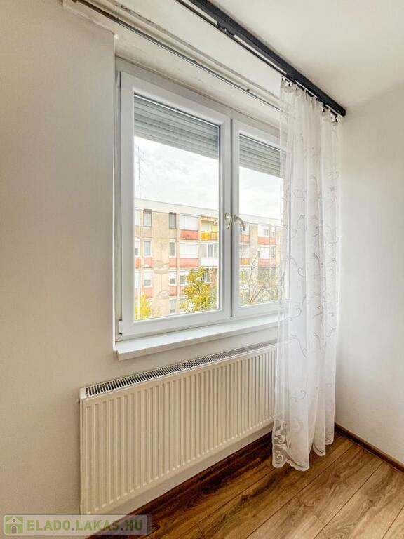 A hálószoba teljeskörűen megújult: frissen festett falak, új laminált parketta és új radiátor gondoskodik a kellemes, otthonos hangulatról.
