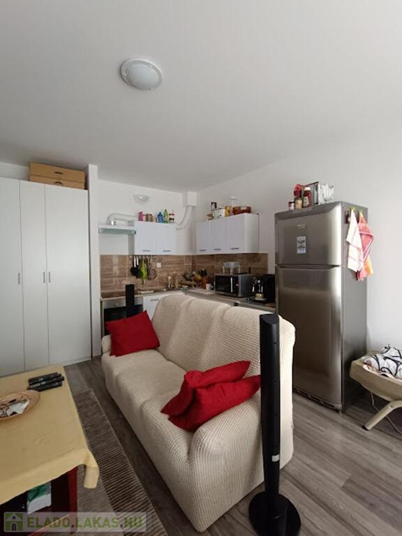 A konyha a nappalival egybenyitott, modern és teljesen felszerelt. A konyhabútor, beépített sütő, főzőlap található, amelyek a vételár részét képezik.