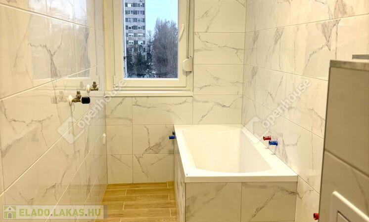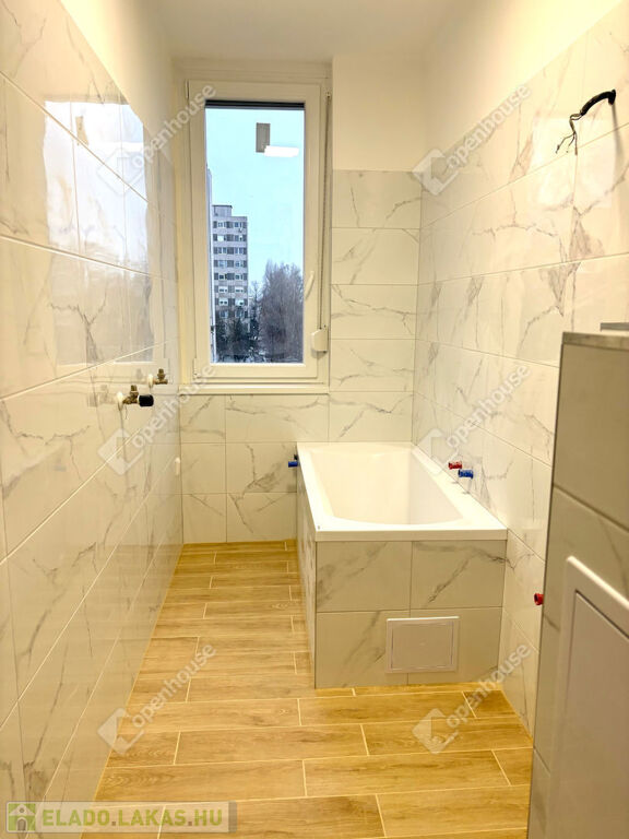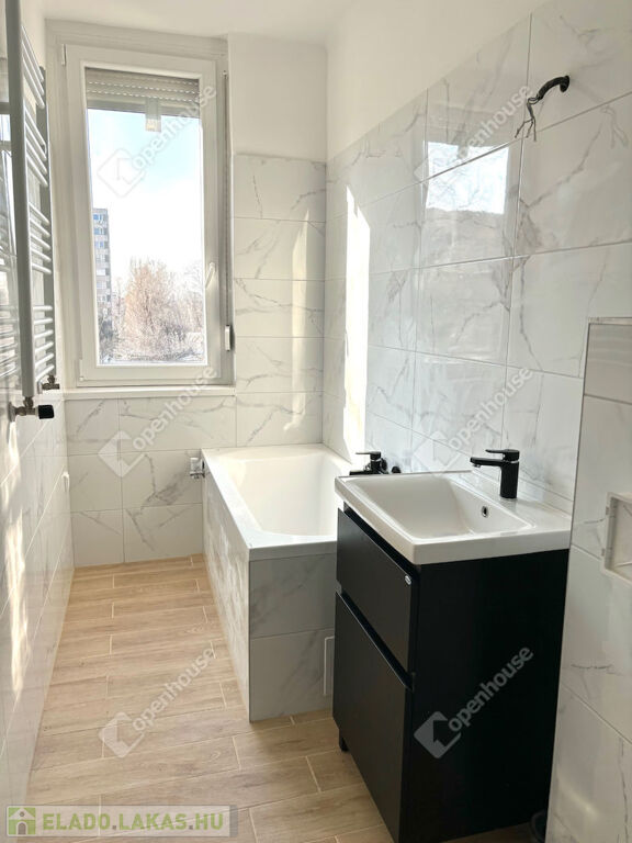 - a fürdőszoba ablakkal szerelt, mely szintén teljes felújításon esett át, új vízvezetékek, új szaniterek, új festés, glettelés, új csempék