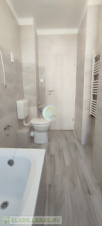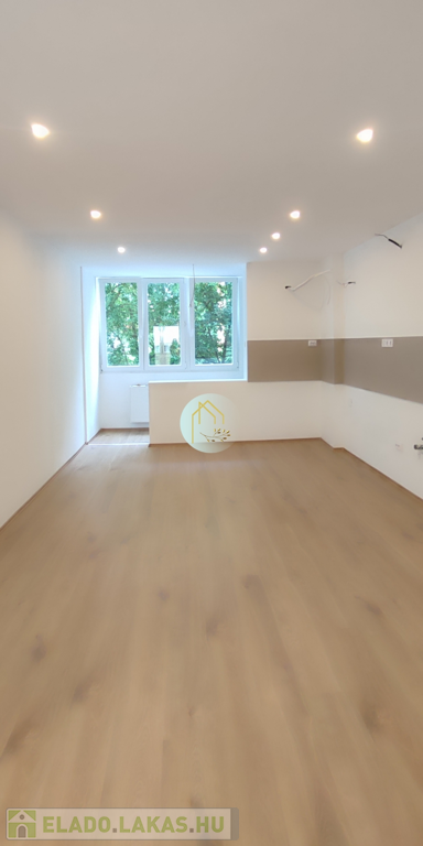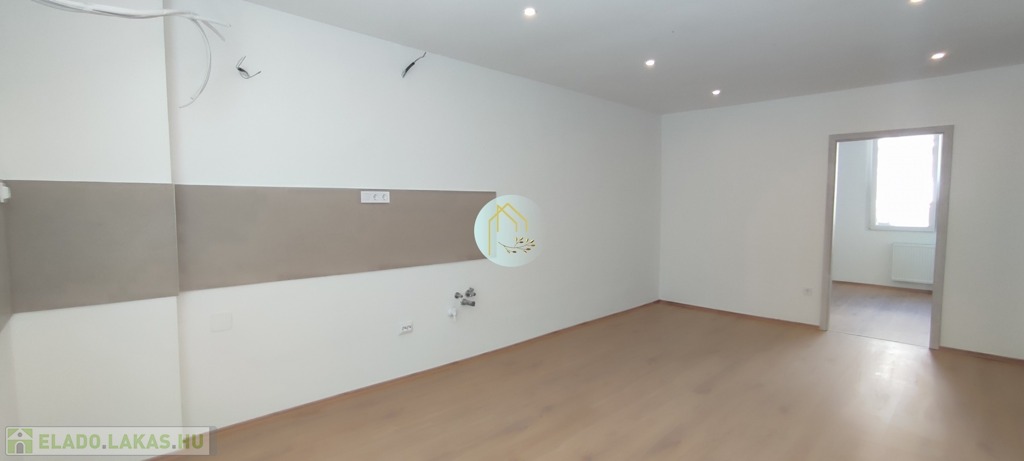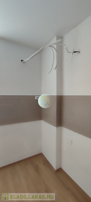 Konyhabútor helye kialakítva, víz kiállások, külön mosogatógépnek is, szennyvízelvezetés, gipszkartonos mennyezet led világítással felszerelt.