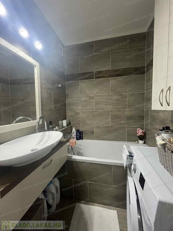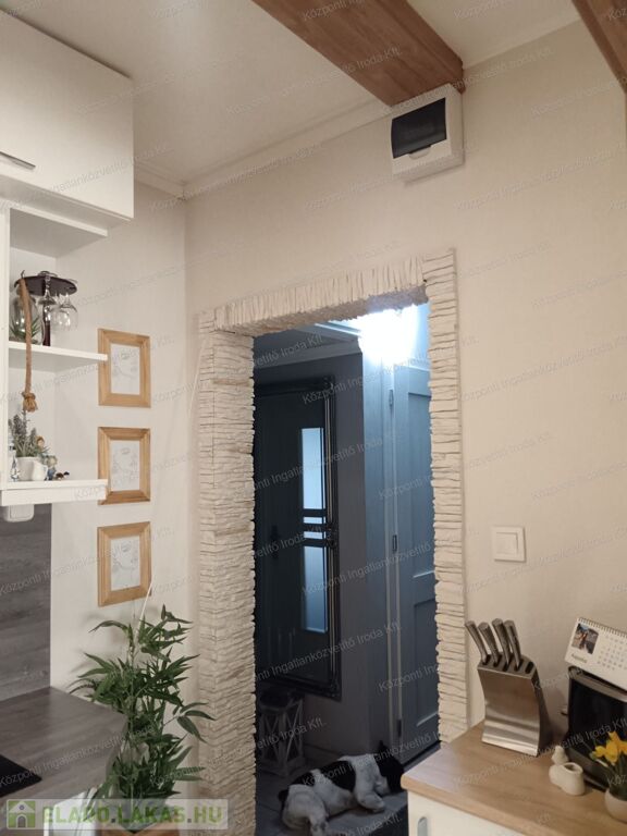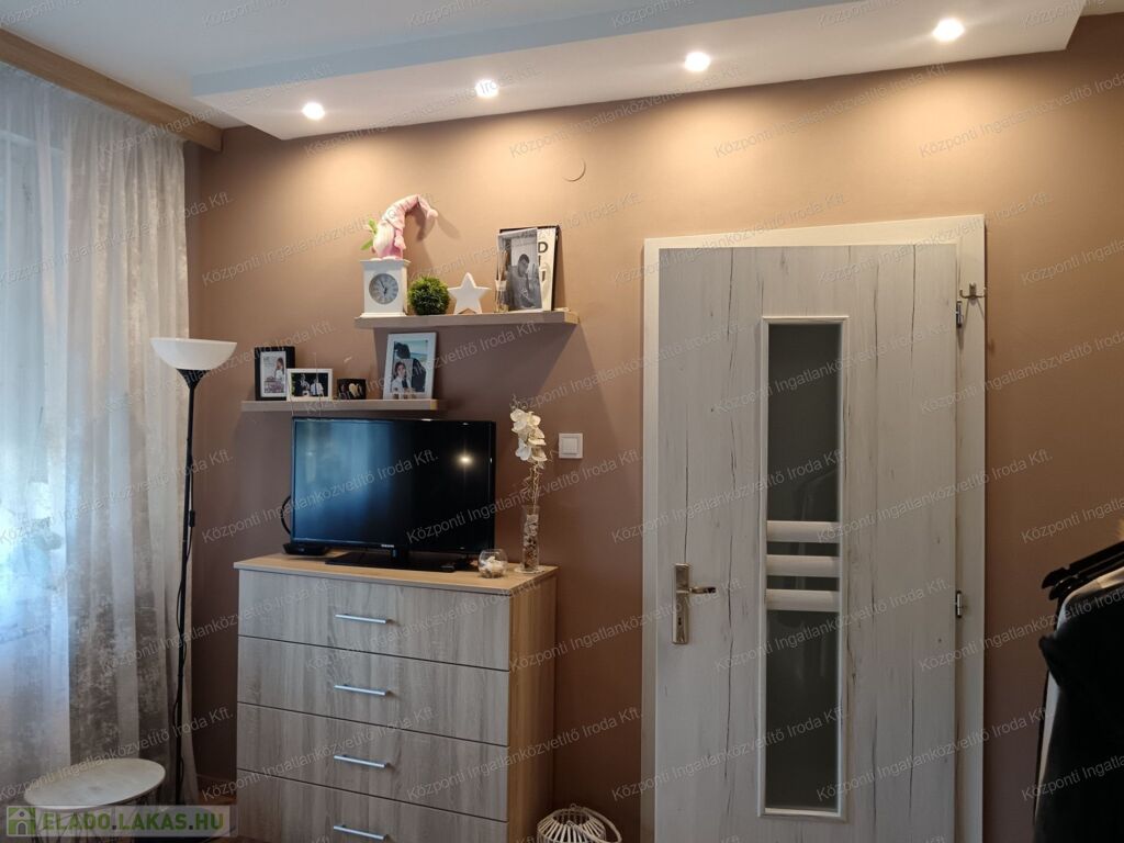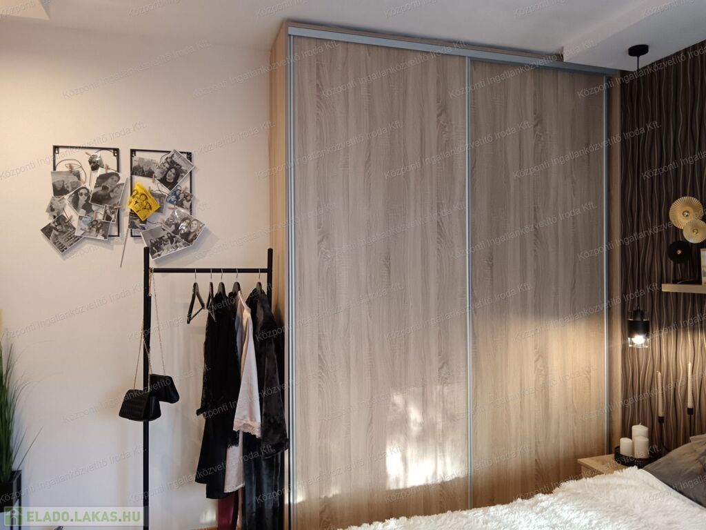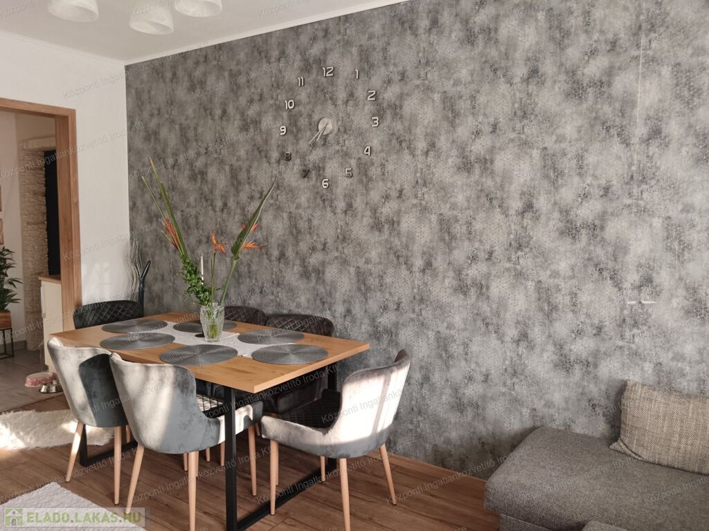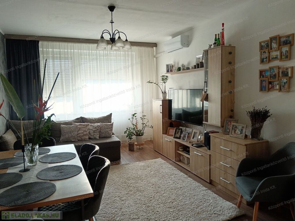 Az ingatlan egy 10 emeletes társasház 4. emeletén található, egyedileg átalakított, teljeskörűen felújított, 2 szobás, 53 m2-es. Helyet kapott benne konyha-étkező-nappali, hálószoba, kisszoba, előszoba, fürdőszoba, WC. A szobák laminált parkettával, a többi helyiség járólappal burkolt. Az otthon melegéről és a háztartási meleg vízről távhő gondoskodik, a hőleadás radiátorokkal történik. A fürdőszobában kád ad lehetőséget a felfrissülésre, lazulásra. A felújítás során cserére kerültek a víz és villanyhálózatok, korszerűsítve lett a fűtésrendszer, cserélve lettek a külső és belső nyílászárók. Az ablakok redőnnyel és szúnyoghálóval felszereltek. A megfelelő hőmérséklet beállításához klímaberendezés biztosított. További tárolásra a lépcsőházban található közös tároló biztosít helyet.
