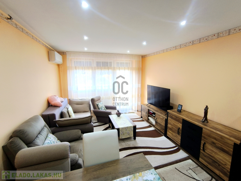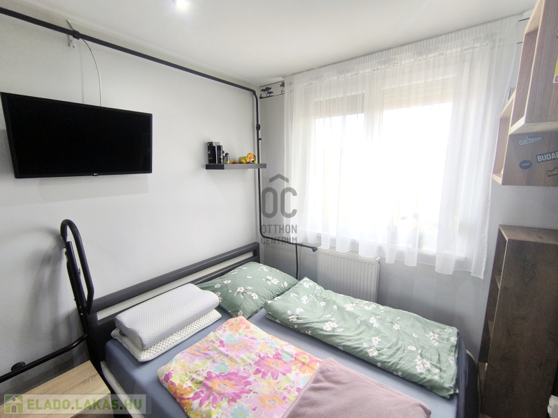 A lakás méretéből adódóan ideális lehet családosoknak, ahol a gyerekszoba mellett saját hálószobájuk is lehet a szülőknek.