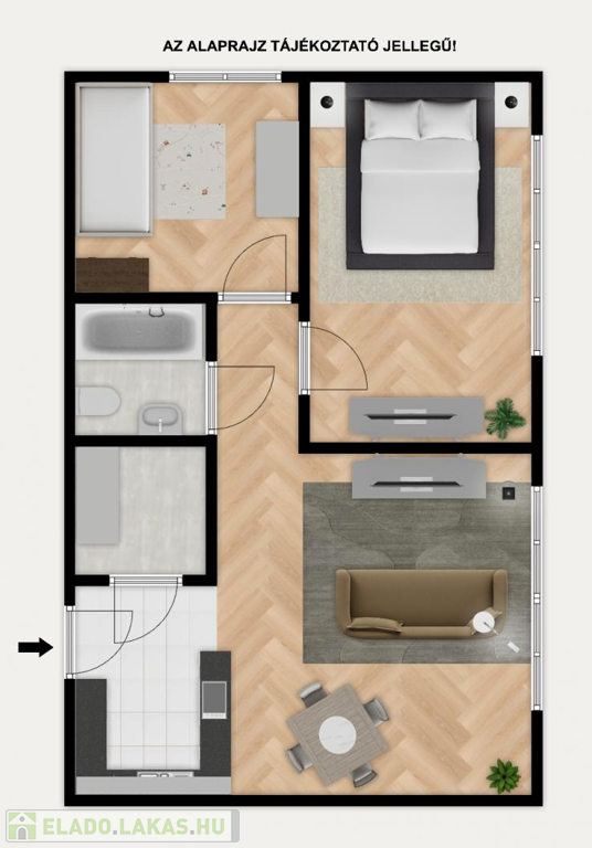 Belépve a lakásba egy praktikus előszoba fogadja Önt, mely elegendő helyet kínál a mindennapi használati tárgyak tárolására.