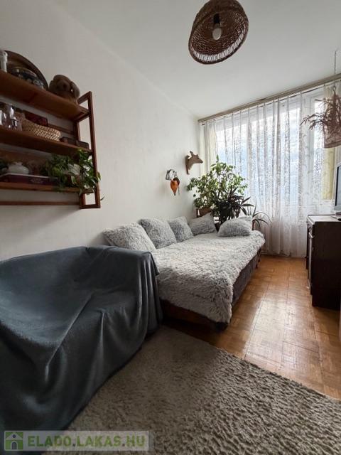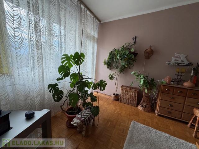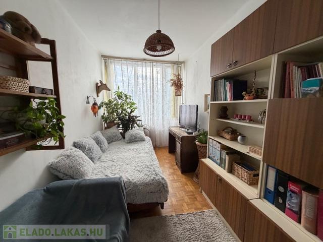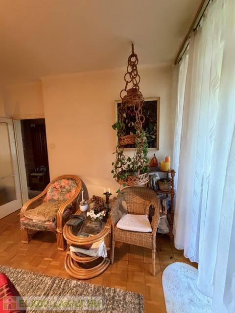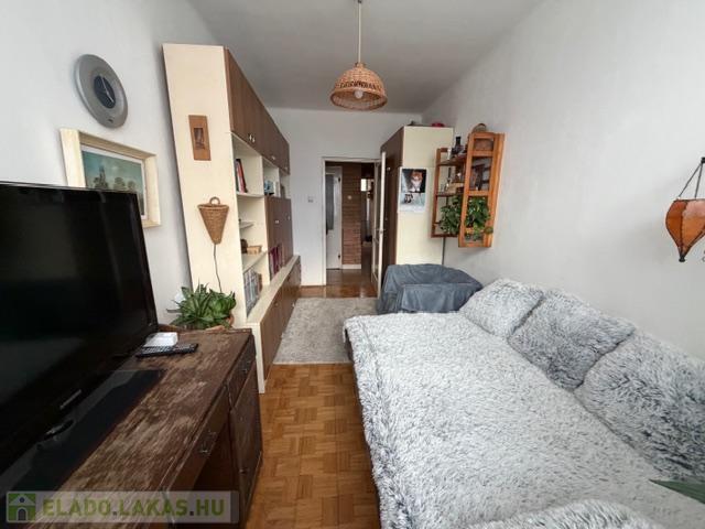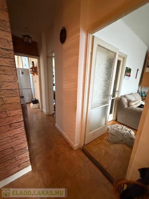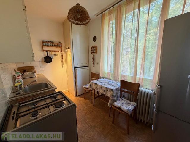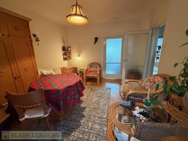 A négy szintes téglaépület 2. emeletén található az ingatlan, két tágas hálószobával, nappalival, konyhával, fürdőszoba és WC áll rendelkezésre. A nappaliból és a hálószobából is egy-egy hangulatos erkély nyújt lehetőséget a pihenésre, a konyha pedig a hátsó parkosított részre nyújt kilátást. A konyha viszonylag tágas, napfényes, praktikus kialakítású, étkezővel, beépített konyhabútorral. A nyílászárók még cserélve nem lettek, régi típusú fából készült, de jó állapotú. A lakásban a folyosón, konyhában, fürdőben hagyományos hidegburkolatok, a szobákban régi típusú szalagparketta funkcionál burkolatként. A lakás melegen tartása társasházi központi fűtésről történik a helyiségekben radiátorokkal. A lakáshoz tartozik egy saját tároló a földszinten. A lépcsőház rendezett, jó lakóközösséggel.