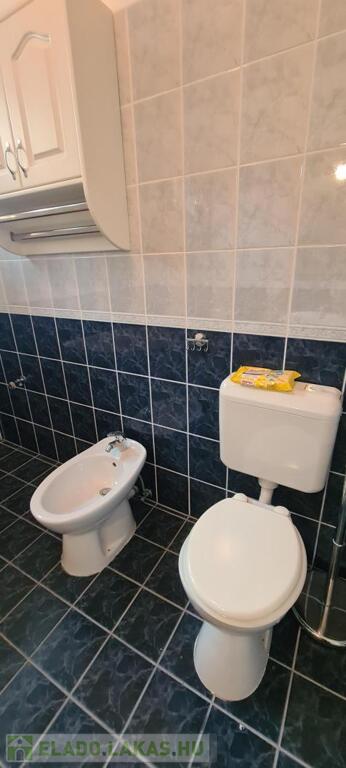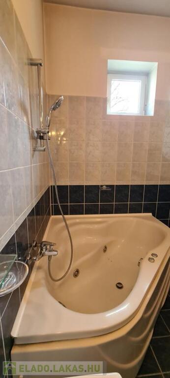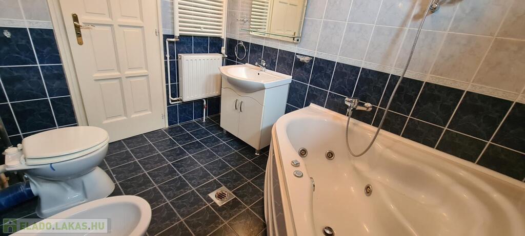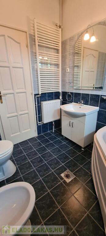 A fürdőszoba tágas, sarokkádas, 2 ablakon keresztül is érkezik be fény, törölközőszárító radiátorral és bidével is felszerelt.
