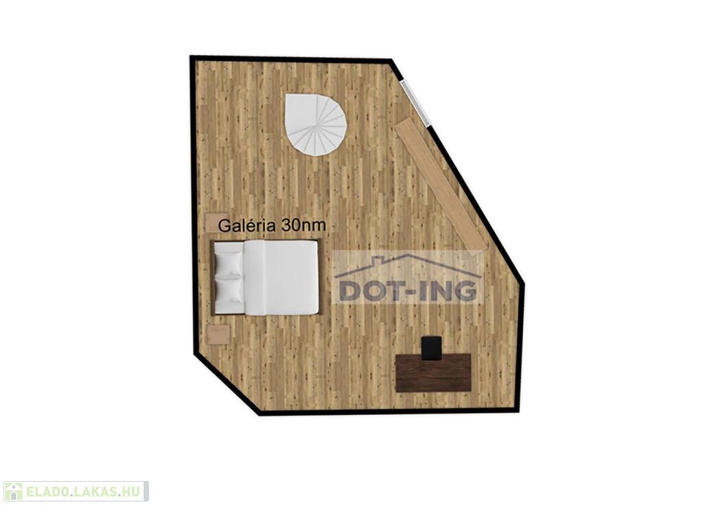 Az ingatlan külön nyíló konyhával, tágas étkezővel, nappalival, 2 szobával, 1 kamrával, emeleti szinten egylégterű galériával rendelkezik, mely lakótérnek alkalmas. A fürdőszoba és a toalett külön helyiségben található. Fűtéséről távhő gondoskodik, saját mérőórának köszönhetően az ingatlan fenntarthatósága rendkívül kedvező és szabályozható valamit 2 hűtő-fűtő klíma is rendelkezésre áll.