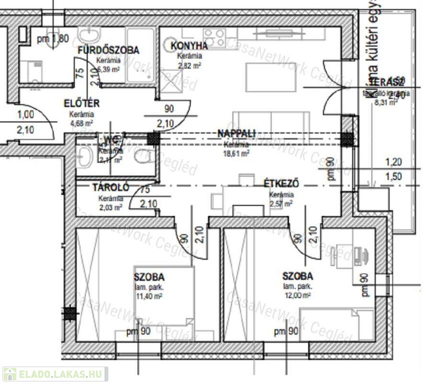 Az ingatlan műszaki tervei alapján hirdetjük meg. Kérjük, vegye figyelembe, hogy a használatbavételi engedély kiadását követően kisebb m²-eltérések előfordulhatnak.