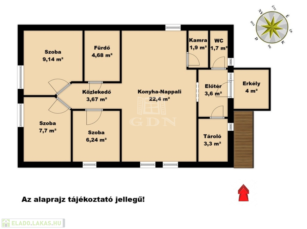 Az elrendezés MODERN ÉLETÉRZÉST nyújt: a konyha teljesen GÉPESÍTETT (beépített sütő, GÁZ főzőlap, MOSOGATÓGÉP), ezen felül három külön NYÍLÓ SZOBA, MOSÓKONYHA, valamint külön FÜRDŐSZOBA és WC áll rendelkezésre.