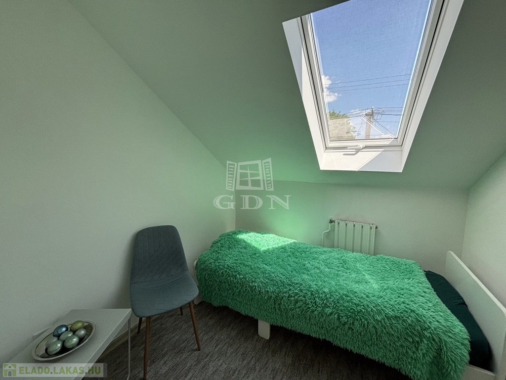 Eladó egy 65 m² alapterületű, AMERIKAI KONYHÁS nappalis, három szobás, teljes körűen FELÚJÍTOTT tetőtéri lakást, melyhez 75 m²-es SAJÁT KERT tartozik.