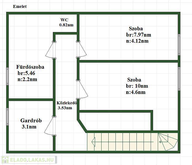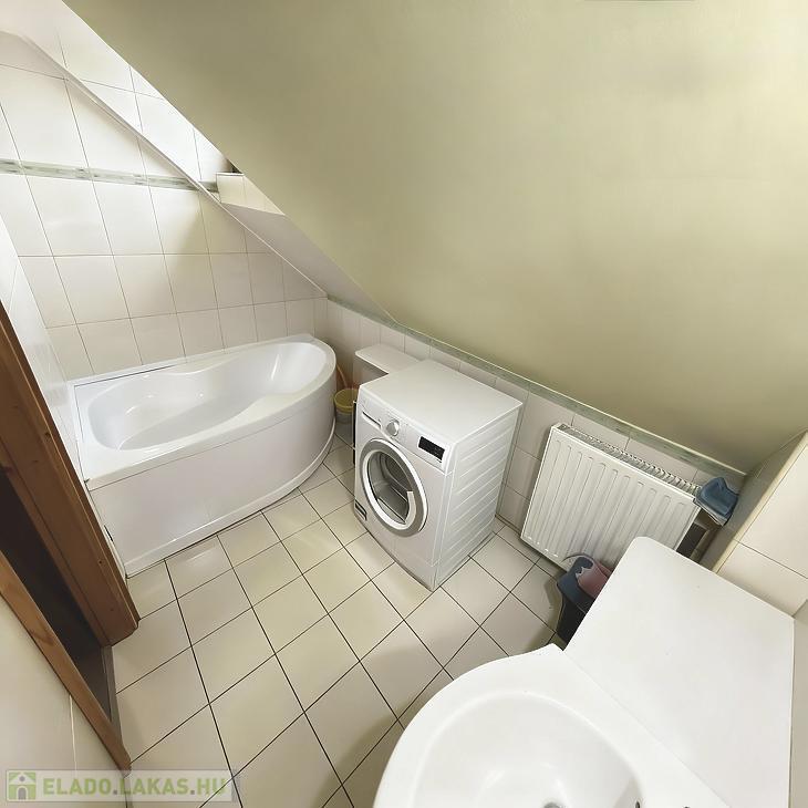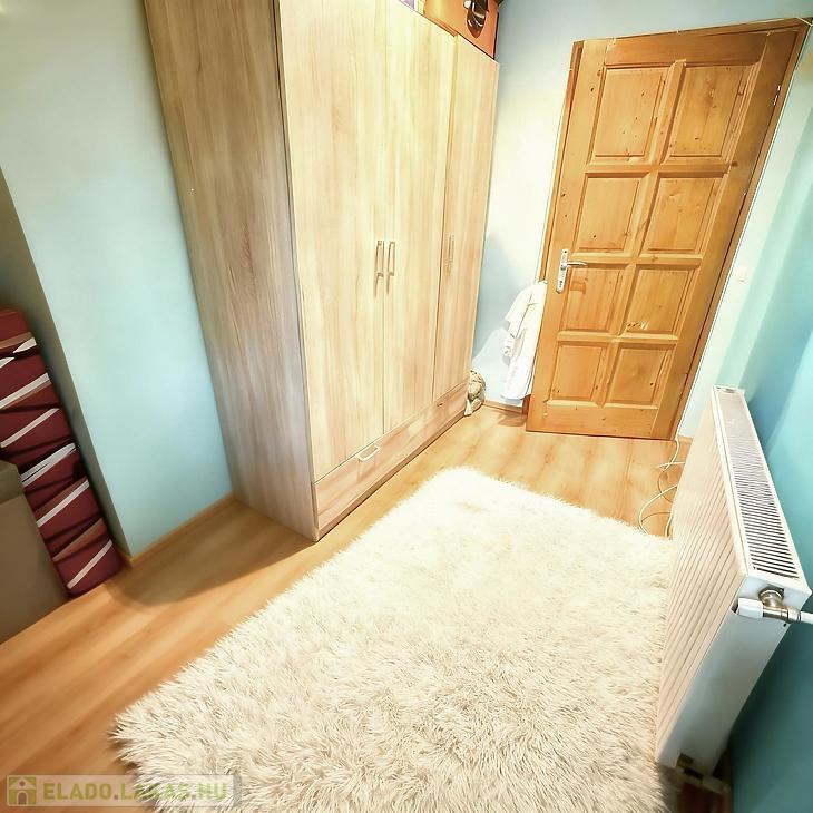 Az emeletre érve egy külön gardróbszoba biztosít kényelmes tárolási lehetőséget, továbbá két külön nyíló szoba kapott helyet, amelyek kiválóan alkalmasak hálónak, gyerekszobának vagy dolgozónak. A fürdőszoba WC-vel szintén az emeleten található. A lakás minden helyiségében új, dupla üvegű, redőnnyel ellátott nyílászárók gondoskodnak a megfelelő szigetelésről és a kellemes hőérzetről.