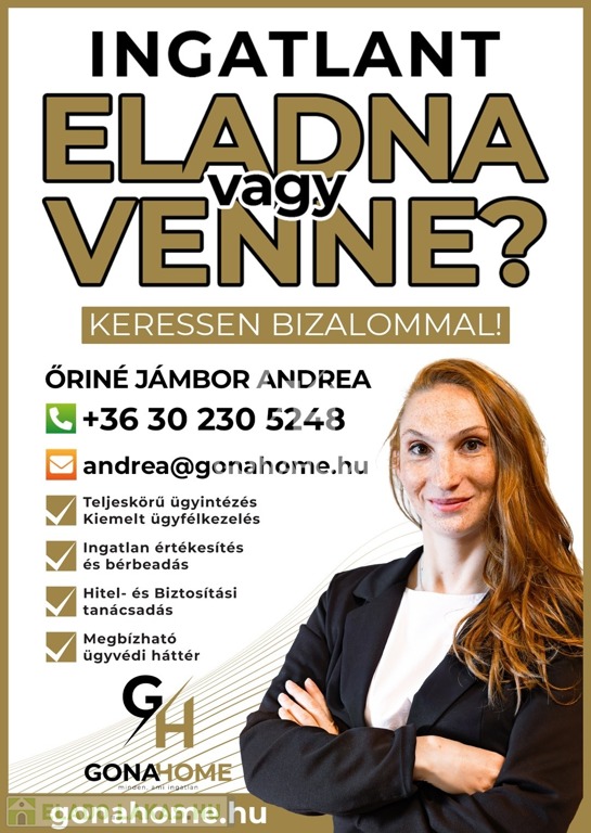 Ne hagyja ki ezt a ritka lehetőséget! Amennyiben az ingatlan megvásárlásához el kell adnia jelenlegi otthonát, úgy annak és a teljes folyamatnak a lebonyolításában is állok rendelkezésre!