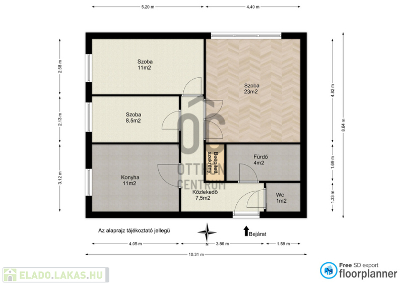 3 külön nyíló szoba, külön fürdő és WC – nincs reggeli sorban állás.