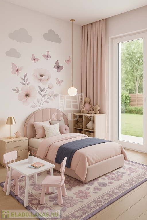 Minden hálószobából közvetlen kijárat nyílik a kertbe, így a család minden tagja élvezheti a privát, zöld környezetet.
