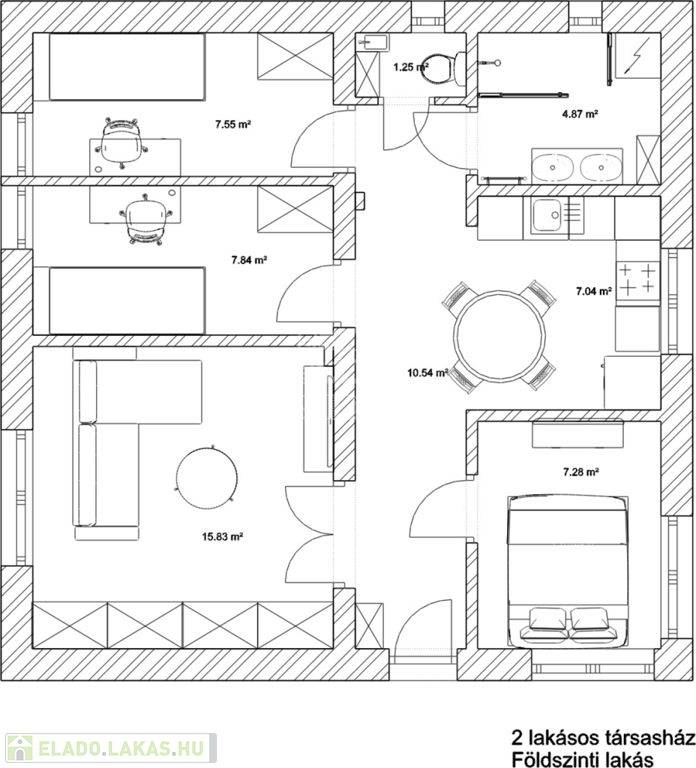 A lakások a ház két oldalán helyezkednek el, teljesen külön bejárattal, ügyvéd általi megosztással.