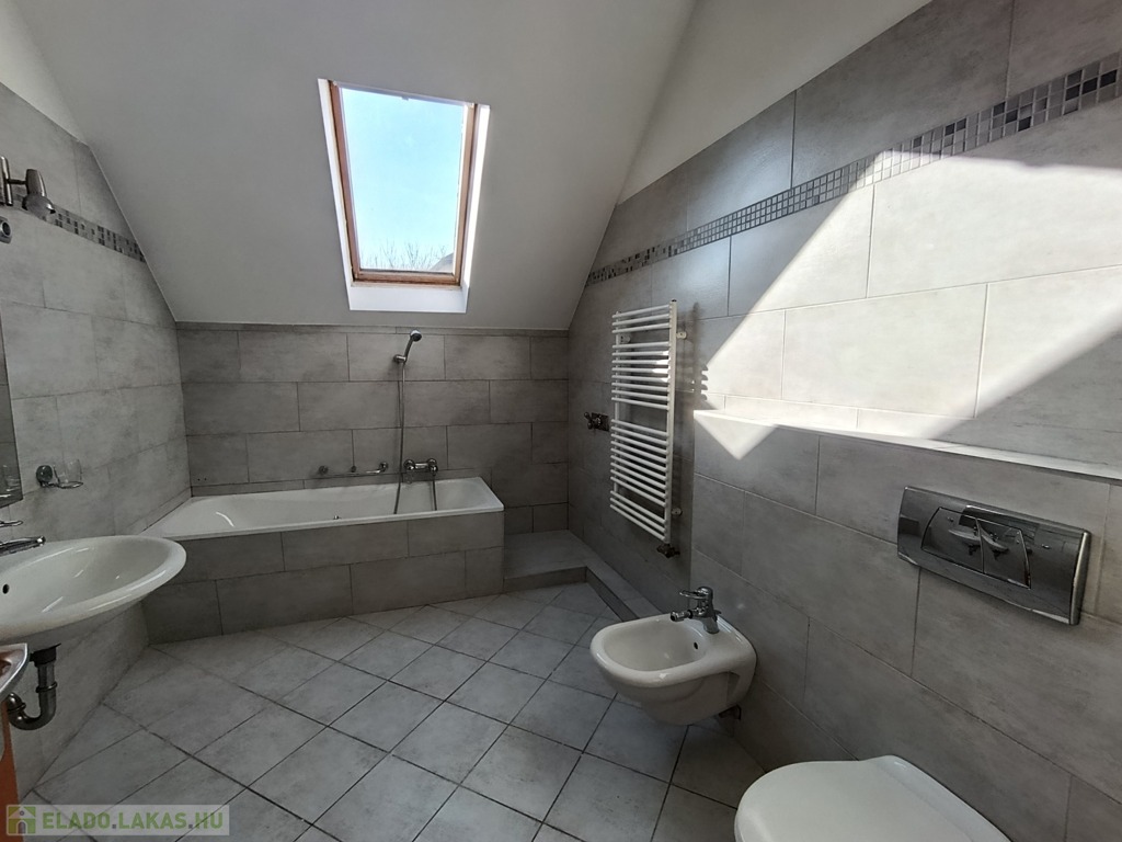 A tetőtér a 2000-es évek elején teljes körű felújításon esett át – beleértve a teljes tetőcserét is. A 105 m²-es lakás elrendezése praktikus és otthonos: három különálló szoba, egy amerikai konyhás- étkezős nappali, tágas fürdőszoba káddal és WC-vel, valamint külön vendég WC. A burkolatok járólap illetve a szobákban szalagparketta.