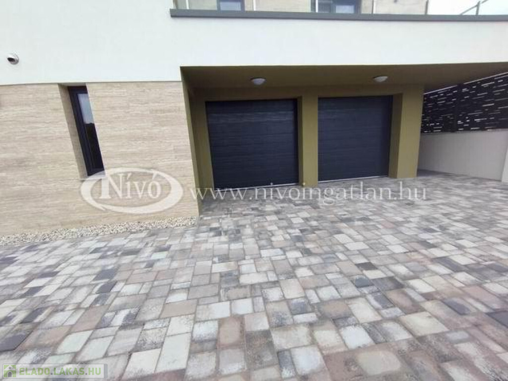 Az ingatlant tágas, világos terek jellemzik. A földszinten található egy nagy amerikai konyhás nappali-étkező rész, és praktikusan egy hálószobába gardróbbal és egy saját fürdőszobába is van ezen a szinten. Exkluzív gépesített konyha beépítésre került. A földszinten helyett kapott egy vendég WC kézmosóval illetve a gépészeti, mosókonyha/háztartási helyiség is. A nappaliból illetve a hálószobából egy 24,36 m2-es burkolt teraszra illetve a kertbe lépünk ki. Az épület előtt egy saját felszíni parkoló és egy 18 m2-es elektromos Hörmann garázskapuval ellátott garázs is helyet kapott. Az ingatlant egy térkövezett útról tudjuk megközelíteni.