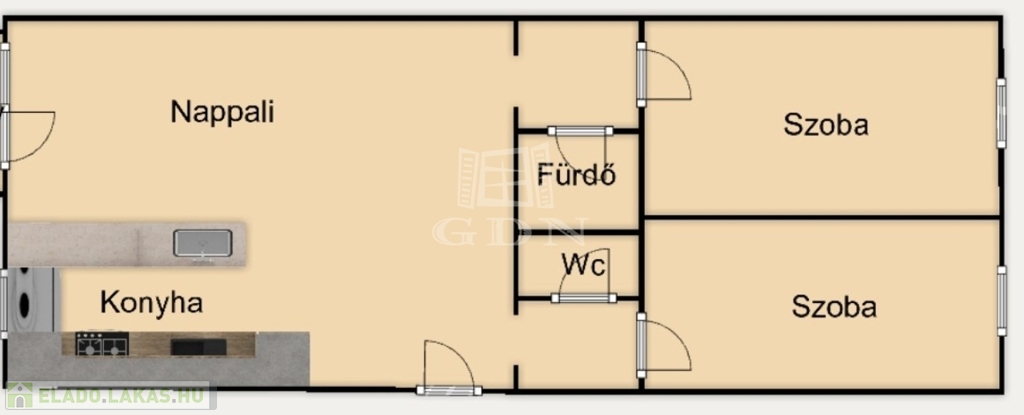 - 1+2 félszobás elrendezés – külön nyíló szobák