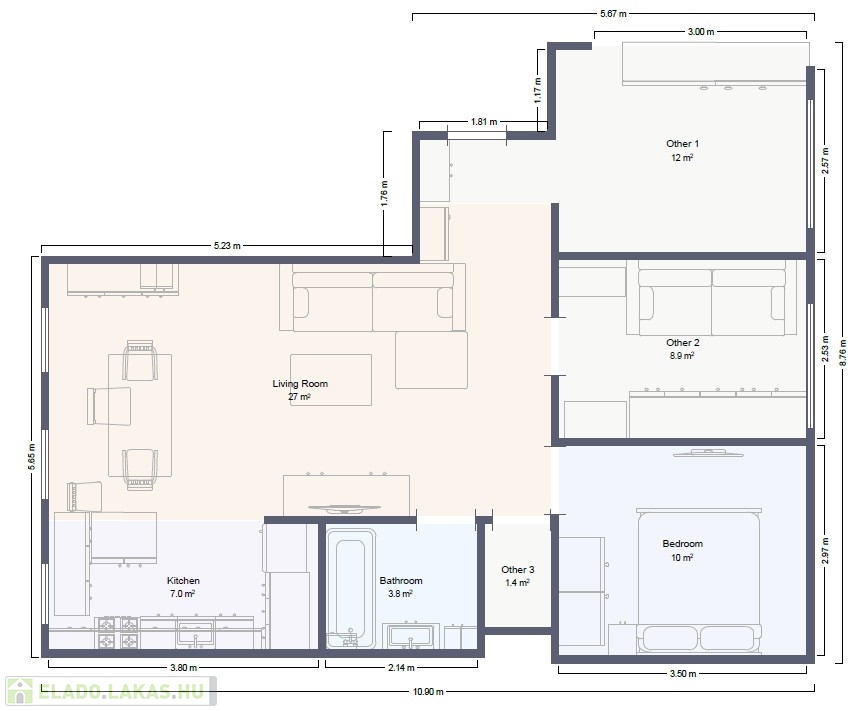 - 74 nm, 1+3 szobás, (amerikai konyhás nappali és három hálószoba alkotja)