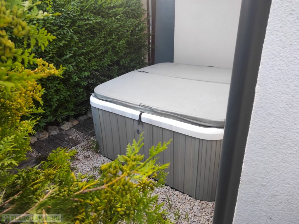 - nappaliból léphetünk a D-i tájolású teraszra, ill. a kertbe, aholegy jakuzzi is található