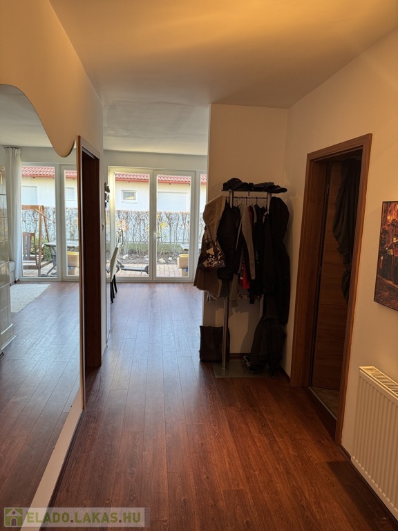 - ikerház külön bejáratú alsó szintjén helyezkedik el, kizárólagos kert használattal