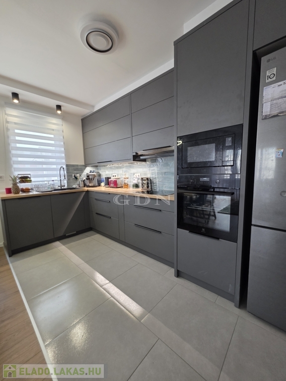 - A tágas nappali–amerikai konyhás tér a lakás valódi központja, amely gépesített konyhával várja új tulajdonosát – tökéletes helyszín a mindennapokra és a vendéglátásra egyaránt.
