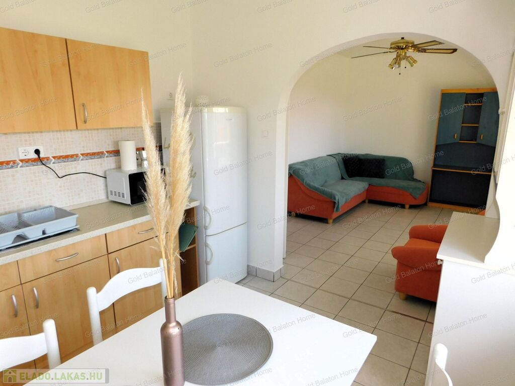 A két hálószobás, nappali + konyha-étkezős, erkélyes ingatlan a méltán népszerű üdülőfalu északi részén, nyugodt, csendes utcában helyezkedik el.