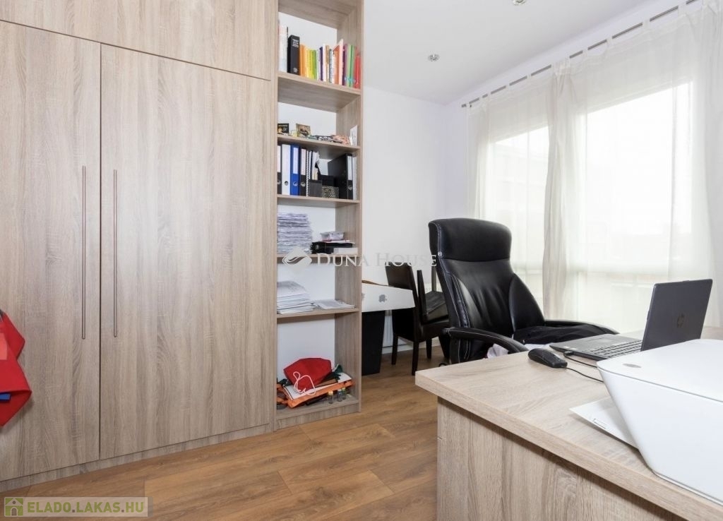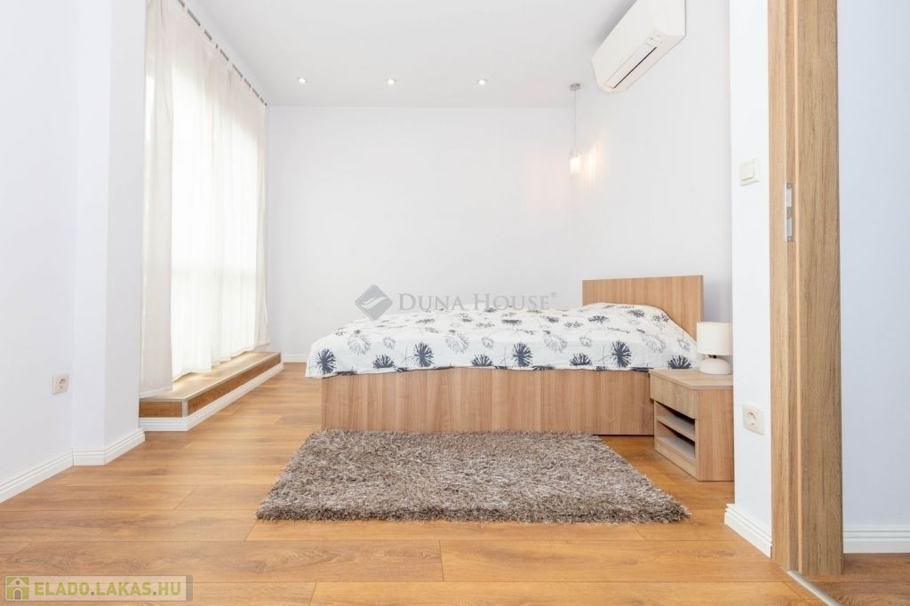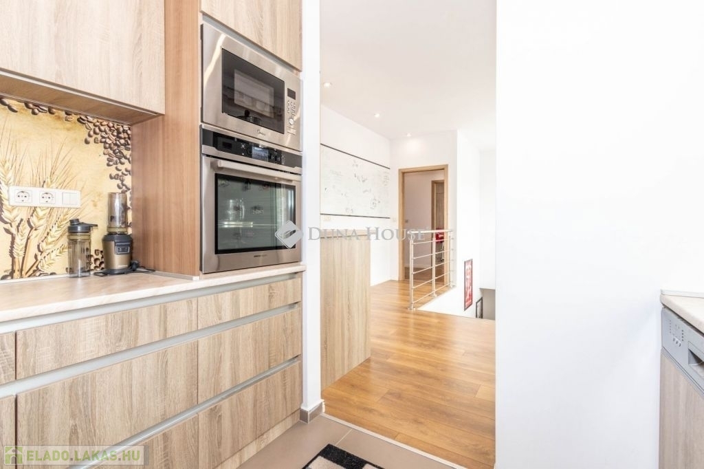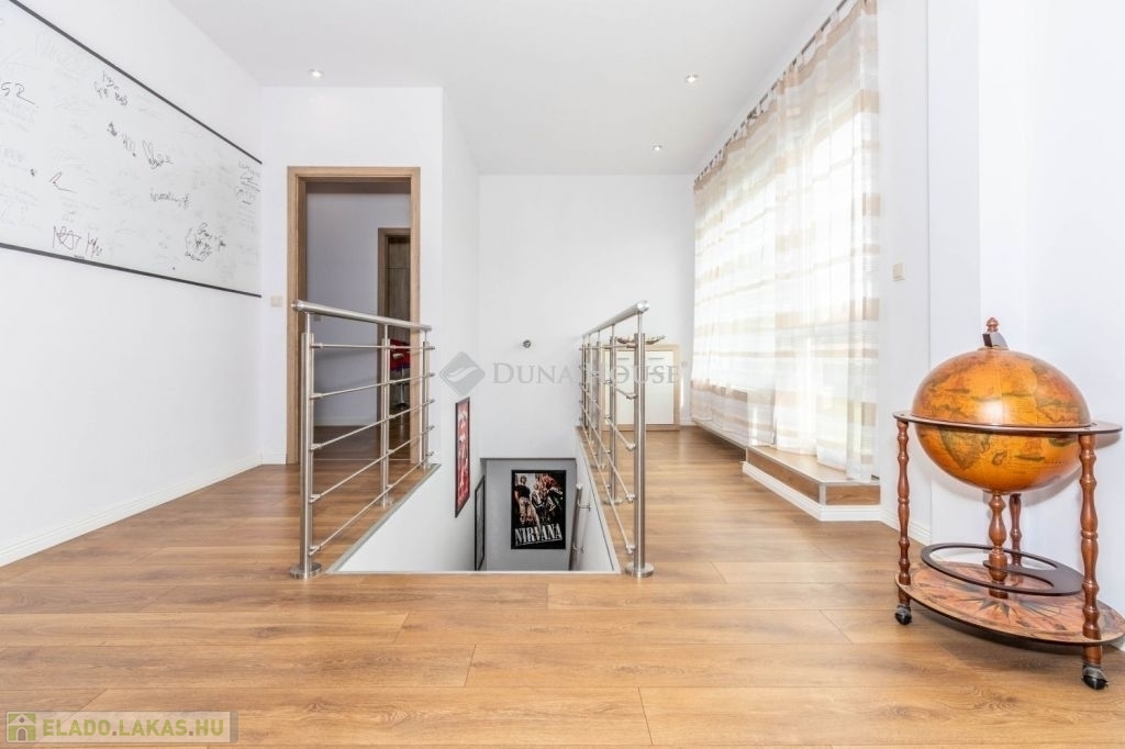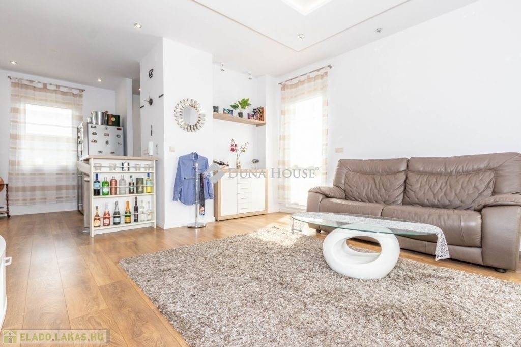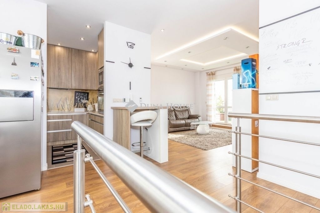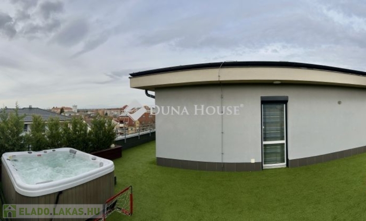 Eladó egy luxus kategóriájú téglaépítésű penthouse Zalaegerszegen. Az ingatlan 2017-ben épült, kivételes minőségben és stílusban, amely nem csak kényelmet, de egyedülálló panorámás kilátást is biztosít jövendőbeli tulajdonosának.Lokációja kitűnő, központi elhelyezkedésű, így a városi élet szolgáltatásai könnyen elérhetőek, legyen szó bevásárlásról, kulturális eseményekről vagy bármilyen más tevékenységről. Az ingatlanba beérve az alsó szinten található az előszoba, fürdőszoba külön WC helyiséggel, gardrób és egy tágas szoba külön erkéllyel. Felső szintre felérve található a tágas nappali, konyha, dolgozószoba, fürdőszoba, hálószoba.A lakás sajátossága a hatalmas terasz, amelyről lenyűgöző panoráma tárul elénk, így a reggeli kávézások vagy baráti összejövetelek új dimenziót nyerhetnek. Az otthon nem csak szemet gyönyörködtető, de praktikus is: a modern, 3 rétegű nyílászárók gondoskodnak a hőszigetelésről és a zajszint minimalizálásáról, így biztosítva a zavartalan pihenést. Az igazi luxusérzetet pedig a lakáshoz tartozó jakuzzi teszi teljessé, amely tökéletes kikapcsolódást nyújt a hosszú napok után.A lakáshoz vásárolható egy garázs elektromos kapuval, ára 13,5 millió Ft áron.Az ingatlanhoz tartozó bútorok további 20 millió Ft összegért megvásárolható.