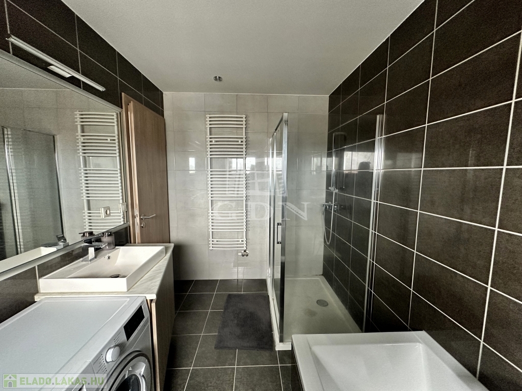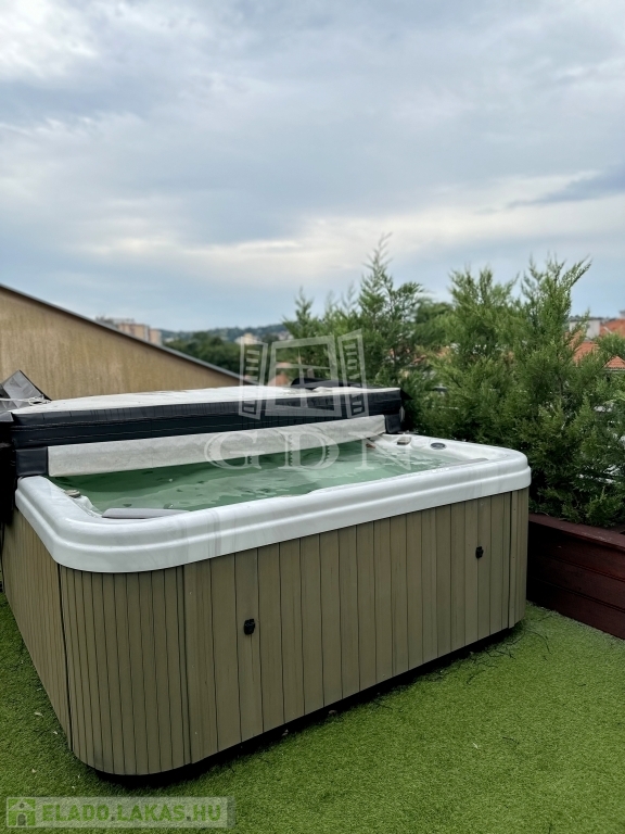A lakás ékét, egyediségét jelentő, fantasztikus kilátással bíró teraszra több helyiségből is kijuthatunk, ahol a 7 személyes JAKUZZI is helyet kapott a kerti bútorok, a grillező és a focikapuk mellett, melyek mind a kellemes időtöltést biztosítják.