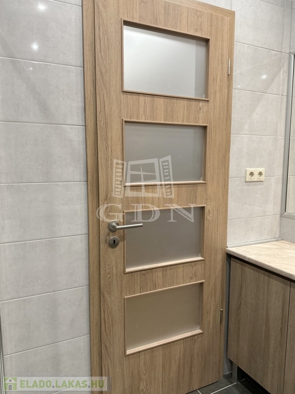Az ablakok többrétegű műanyag nyílászárók, elektromos redőnnyel ellátottak. A hideg-meleg burkolatok új állapotnak örvendnek, a belső ajtók minőségi, tejüveggel ellátottak. A világításról beépített Spot lámpák gondoskodnak.