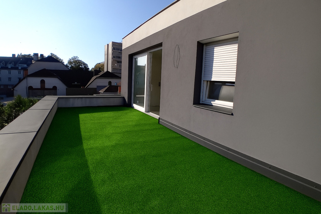 Eladásra kínálok egy 100 m²-es lakást + 22 m²-es műfüves terasszal egy 4 lakásos társasház második emeletén.