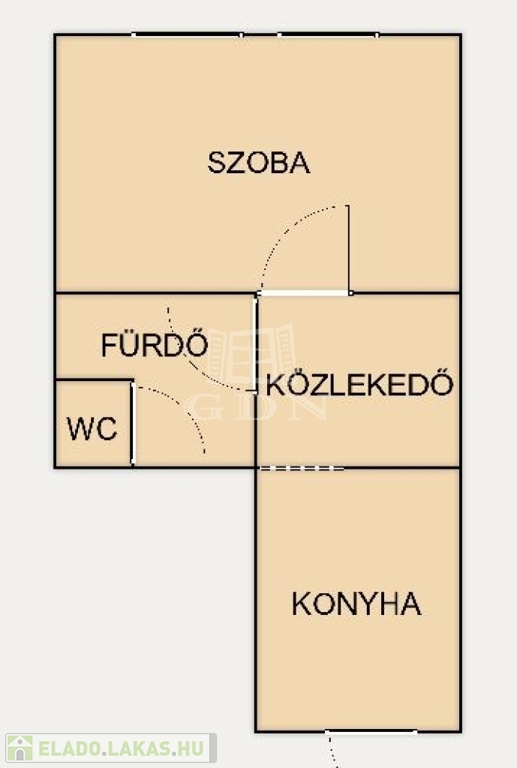 A földszinti ingatlan 38 négyzetméteres, egy szobás kialakítású. A nagyméretű szoba lehetővé teszi egy kényelmes méretű hálósarok leválasztását, így külön nappalihelység is kialakítható, akár a köztlekedő összenyitásával is. Fördőszobája zuhanyzóval és külön ajtóval leválasztott mellékhelységgel felszerelt.