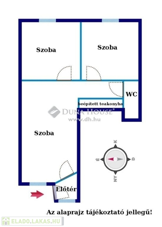 Az ingatlan lakásként soha nem funkcionált, így klasszikus értelemben vett konyhája nincs, és a vizesblokk is egy wc-t és mosdót foglal magában. A lehetőség viszont adott arra, hogy a jövőbeni tulajdonos szükségleteinek megfelelően alakítsa át, akár lakássá, akár üzletként történő hasznosítás céljából. Jelenleg egy szélfogóból, egy fogadótérből, és két külön bejárattal rendelkező szobából áll.