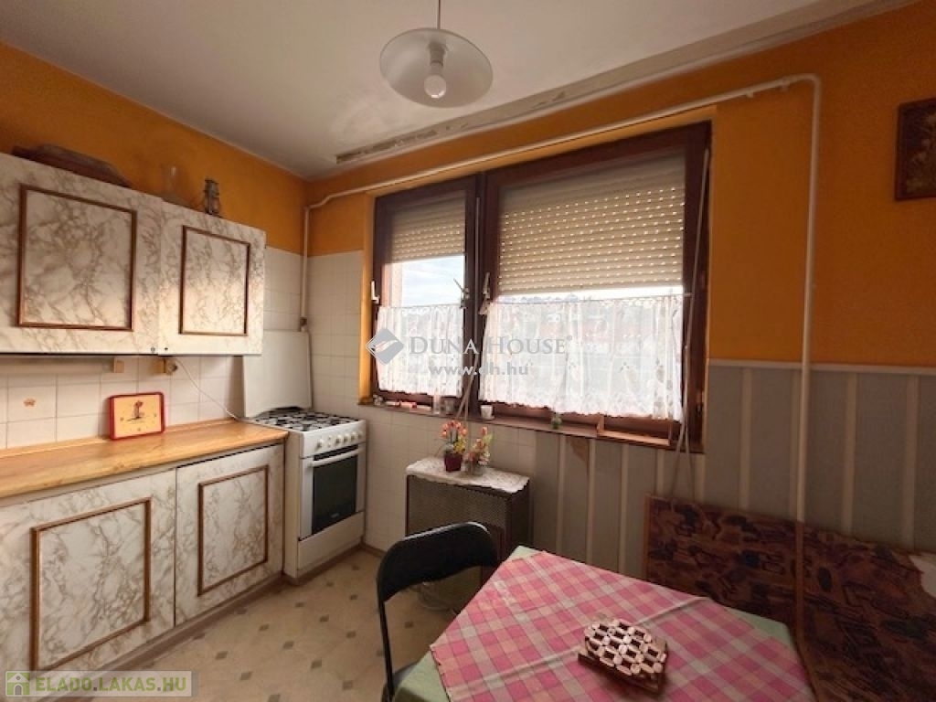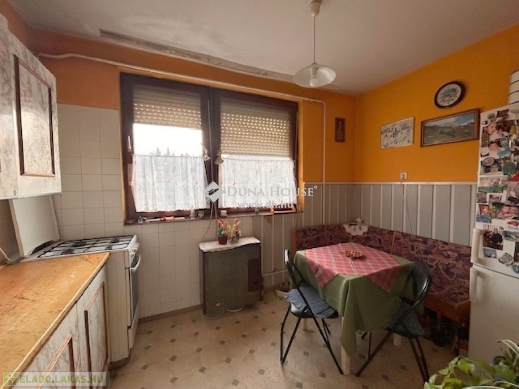 A negyedik emeleti lakás eredeti állapotú, erkélyes, gáz-konvektoros fűtésű.