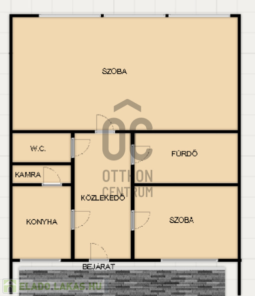 2 szobás: 1 szoba északi 1 szoba és a konyha déli tájolású