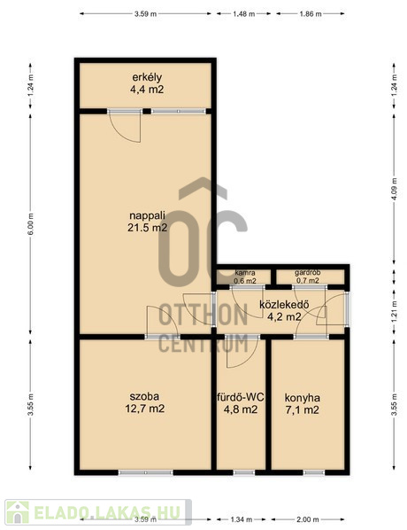 - A nappaliból nyílik a 4,4 m2-es erkély.
