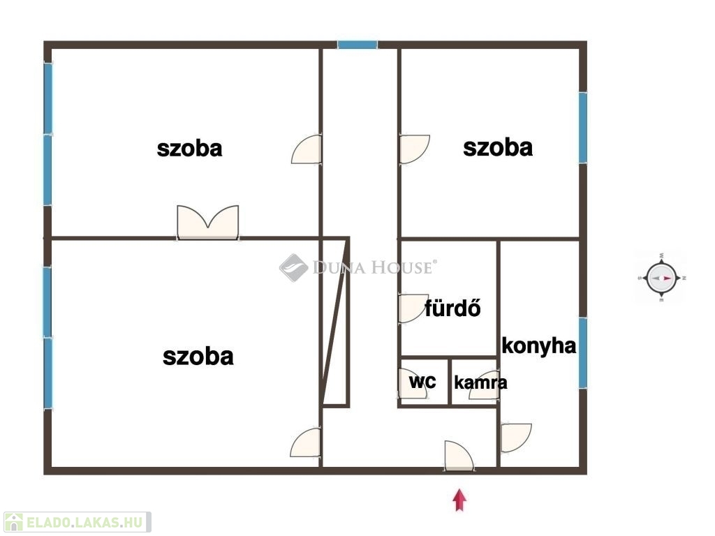 Az ingatlanba belépve egy beépített szekrényes folyosót találunk. Innen nyílik 3 kényelmes méretű szoba, valamint egy fürdő és egy wc.