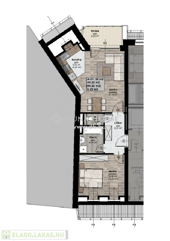 - fűtés: központi gázkazán (hőszivattyúval kiegészítve), egyedi mérőkkel ellátva