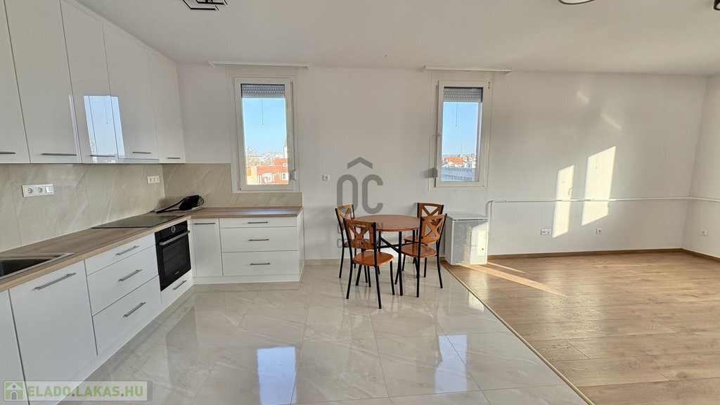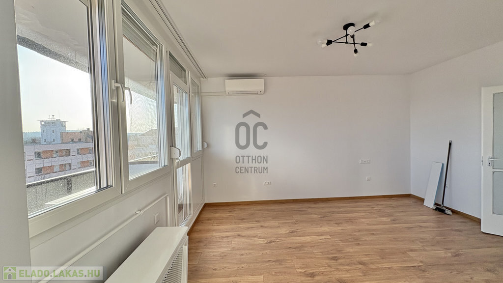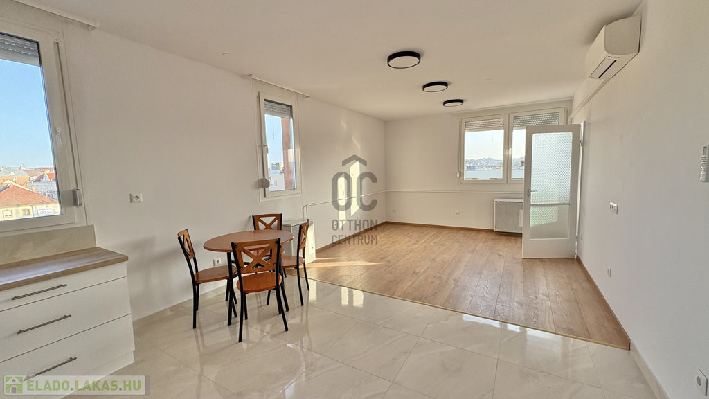 Eladó egy 58 m²-es, amerikai konyhás nappalival rendelkező, erkélyes lakás Zalaegerszeg belvárosában, liftes társasház 5. emeletén, városi panorámával.