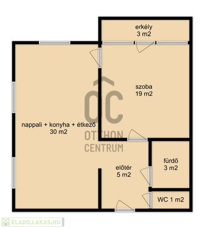 A lakás praktikus elrendezésű: előtér, tágas és világos nappali-konyha, külön nyíló hálószoba erkélykapcsolattal, zuhanyzós fürdőszoba, valamint külön WC található benne.